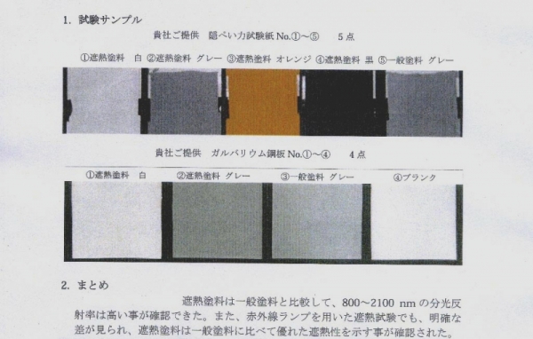 埼玉ペイントで扱っている塗料のご紹介 [赤外線反射測定データー]
